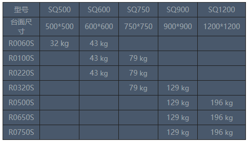標(biāo)準(zhǔn)方形擴(kuò)展臺的質(zhì)量表